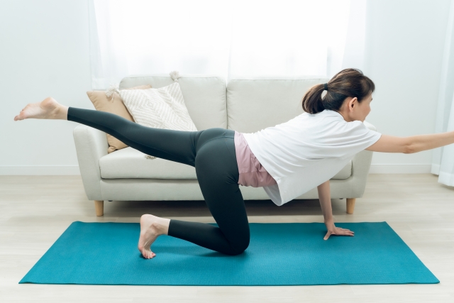四つん這いの姿勢から、対角線上の手と足をゆっくり伸ばすバードドッグは、背筋と臀筋を同時に鍛えられる優れたエクササイズです。バランスを取りながら行うため、体幹の安定性も高まります。左右それぞれ10回ずつ、ゆっくりとした動作で行うことを意識してください。勢いをつけずに、筋肉の動きを感じながら丁寧に行うことが効果を高めるコツです。