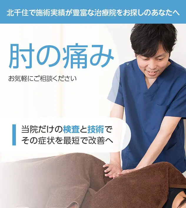 日常生活に支障が出ている肘の痛みや、どこに行ったらいいのか分からない症状でお困りなら、おひとりで悩まれずに、経験豊富な私たちにご相談ください。