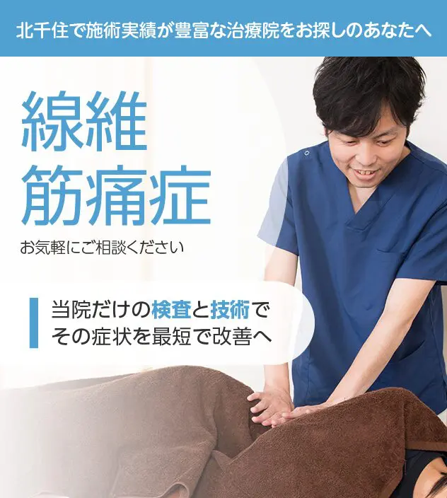 北千住駅西口から徒歩4分。平日は20時、土日祝は17時が最終受付となり、仕事帰りでも通いやすいと評判です。明るく清潔な院内で、女性やお子さま連れも安心してお越しいただけます。完全予約なのでお待たせする事もありません。